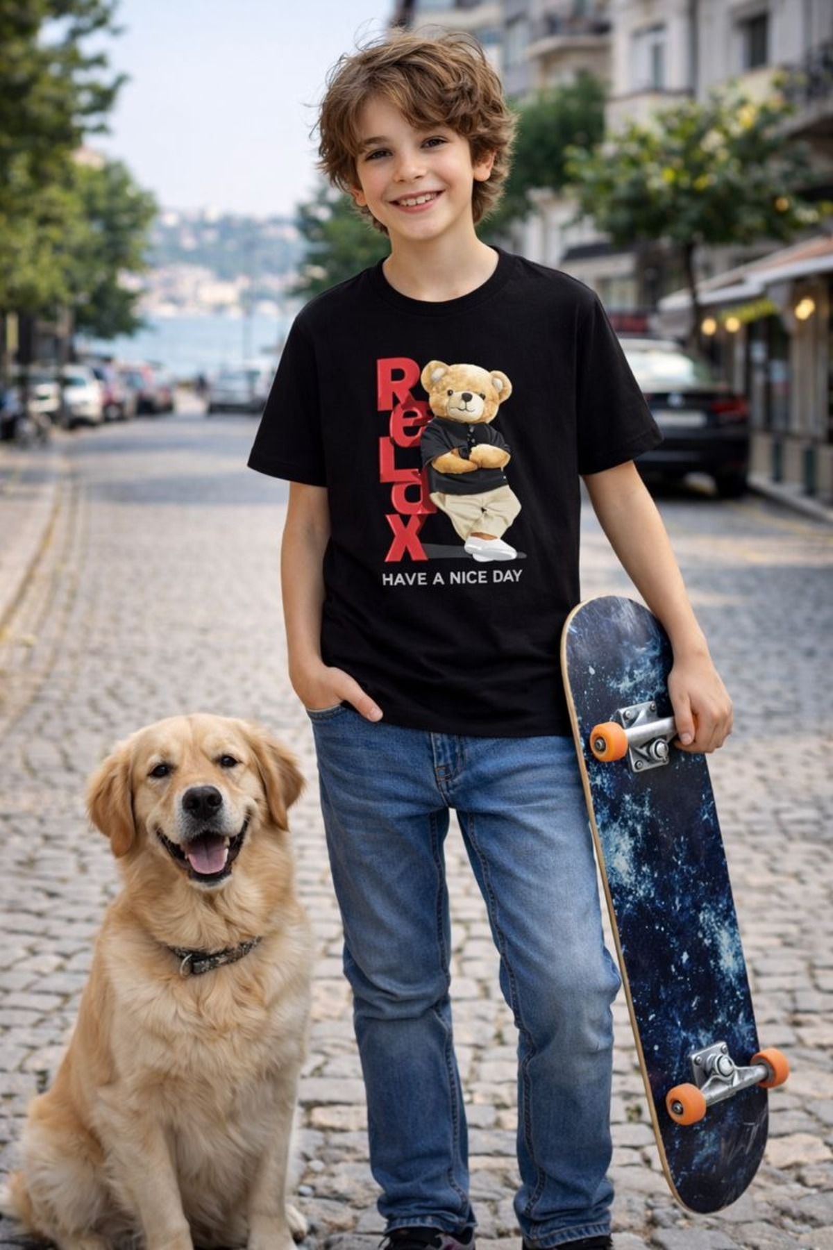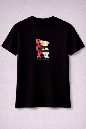 Teddy ayıcık Relax Baskılı Erkek Çocuk T-shirt %100 Pamuk — %100 pamuk, yumuşak dokulu ve nefes alabilir çocuk t-shirt. Günlük kullanım için ideal unisex tasarım.