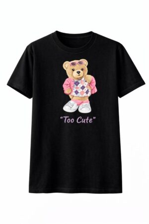 Teddy ayıcık Too Cute Baskılı Kız Çocuk T-shirt %100 Pamuk — %100 pamuk, yumuşak dokulu ve nefes alabilir çocuk t-shirt. Günlük kullanım için ideal unisex tasarım.
